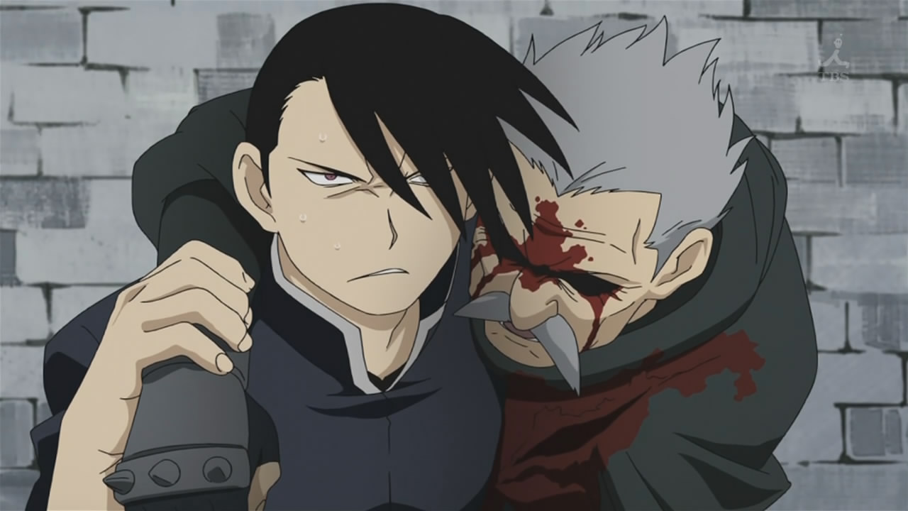 Continua el enfrentamiento entre Fu, Greed y el Führer, por otro lado Ed y los demás que se encuentran en la parte baja caminando hacia Padre se encuentran con el científico que creo a King Bradley este envía a las sobras de los reclutados para ser el King Bradley y mientras estos atacan a Ed y los demás este empieza a crear el círculo de transmutación, mientras tanto en la pelea con King Bradley fu es herido de gravedad y cuando está a punto de ser asesinado es rescatado por Ling que en ese momento toma el control de su propio cuerpo, al ver desangrado a Fu, Ling le dice que este debería tomarse unas vacaciones y fu responde que si debería tomarse unas largas vacaciones, dicho esto fu golpea a Ling y le pide a Greed que active su armadura y se lanza hacia Bradley activando unos explosivos que tenía pegados al cuerpo, pero Bradley reacciona rápidamente y corta los explosivos matando a fu aprovechando el cuerpo de fu Buccaneer le clava la espada de Bradley atravesando el cuerpo de Fu, Lan Fan observa atónita lo que sucede, mientras tanto Izumi, los hermanos Armstrong y los demás se deciden a abandonar el centro de mando y toman la puerta por la que salieron los maniquís, en eso el doctor activa el círculo de transmutación y se dan cuenta que en realidad son 5 laboratorios y todos conforman un círculo de transmutación apareciendo así una serie de ojos bajo los sacrificios Edward, Alphonse, e Izumi.