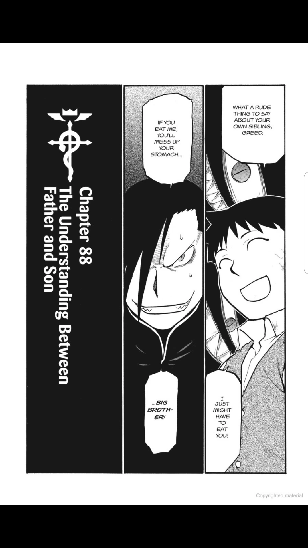 The Understanding Between Father and Son (親子の情 Oyako no Jō) is the 88th chapter of Fullmetal Alchemist.