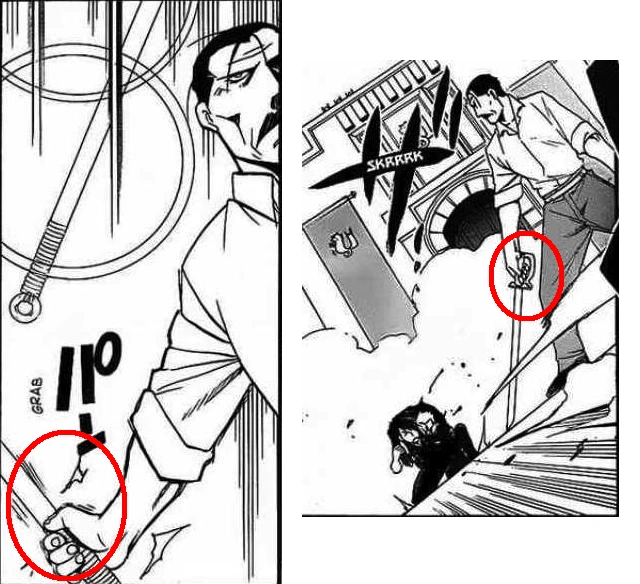 - In magazine version of the chapter during the battle between Greed, Fu, and Wrath, Wrath steals Fu's sword and cuts him down with it. In the previous panel, however, he is shown holding the sword he lost to Buccaneer. This is fixed in the bound volume version.