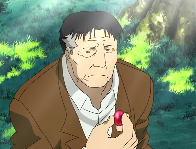 Once the Elrics settle down inside his home, Marcoh tells them that, he took precious research material when he deserted, refusing for anyone including Edward to have it due to it being used in the Ishbal Massacre. Ed tries to convince Marcoh that they are trying to do the greater good despite their foolishness. Al helps Marcoh feel better by mentioning their recent adventure in Xenotime and how they helped the children he saved before. Ed suddenly discovers the hidden area with his alchemy where Marcoh's research material is. The material resembles the red water from Xenotime with no toxicity as well as its ball shaped form having a resemblance to Cornello's fake stone. Just as Al holds Ed off, seeing that taking it is wrong, a small military group led by Brigadier General Grand arrives, having followed the Elrics. Grand plans to seize the Philosopher's Stone that Marcoh has and tells the Elrics that while the Philosopher's Stone is incomplete, it enhanced their alchemy powers during the Ishvalan Civil War. Ed sees it possible to create a perfect stone from the materials, but Grand refuses to let him have it and takes Dr. Marcoh into custody.