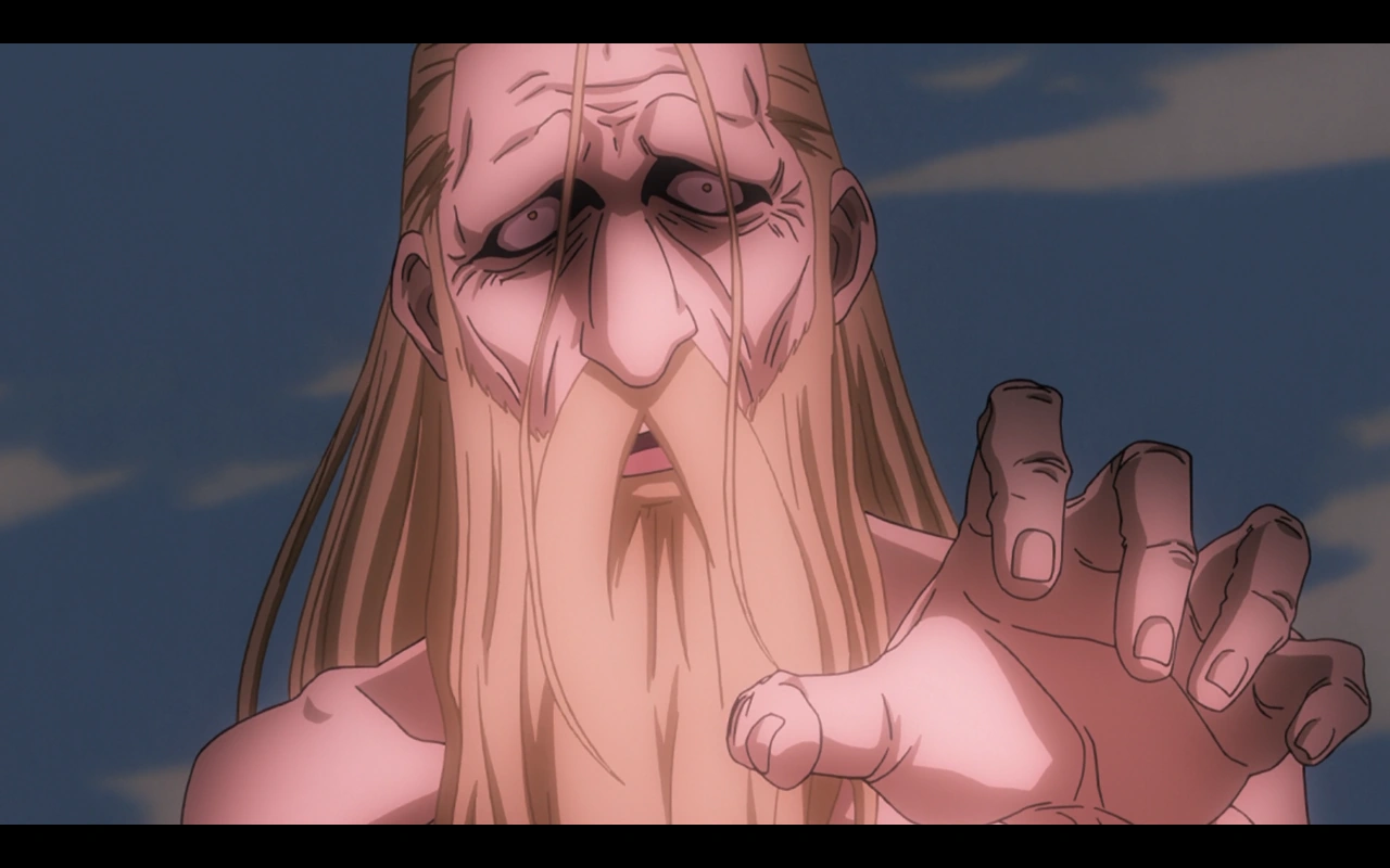 Four centuries later, on the Promised Day, the King is awakened from the whirlpool of souls within Father's body when he "births" a number of humans to prove a point to Van Hohenheim. Finally having returned to a human body after so long, the king mistakenly perceives his rebirth as proof of his desired immortality.